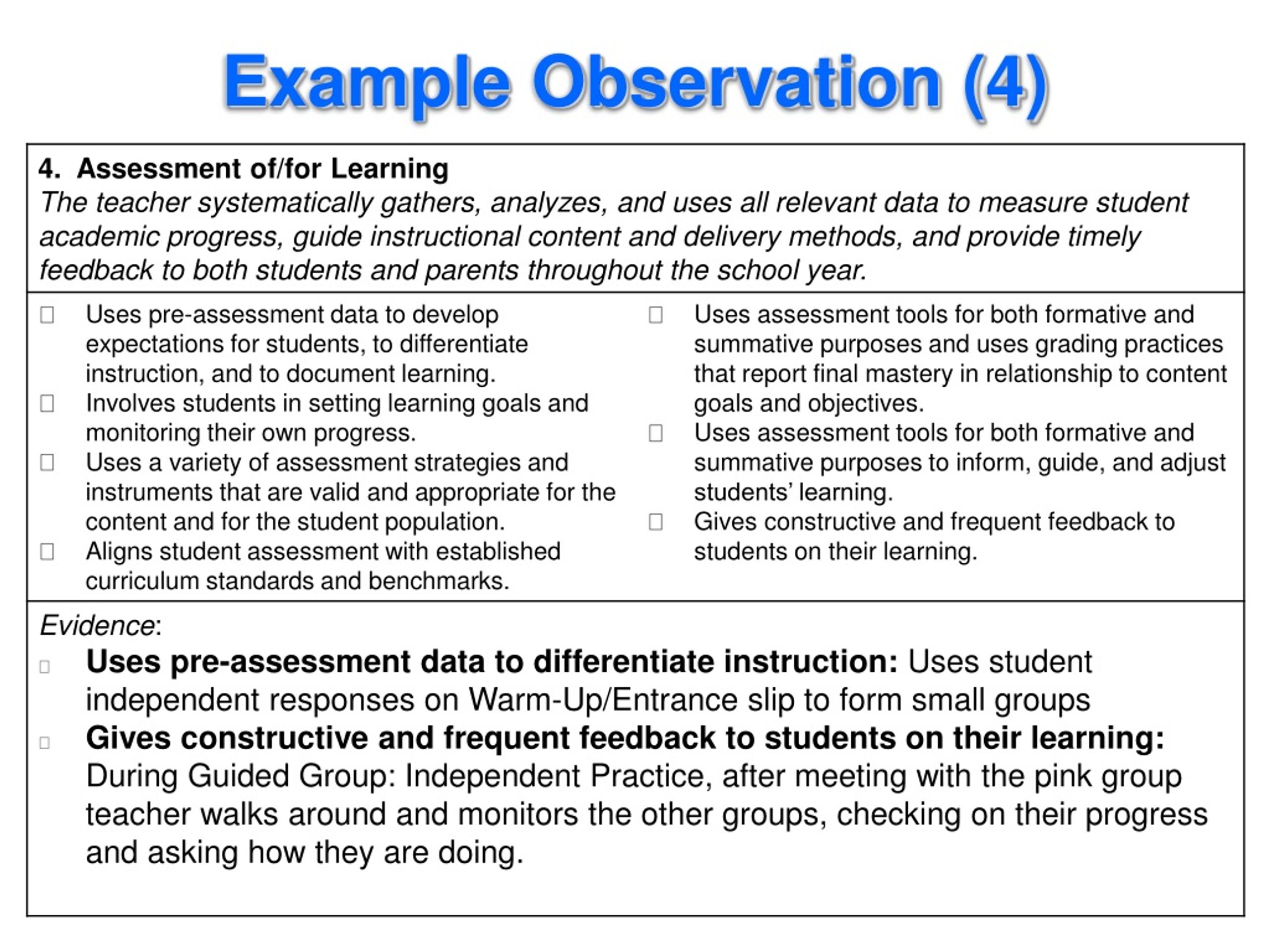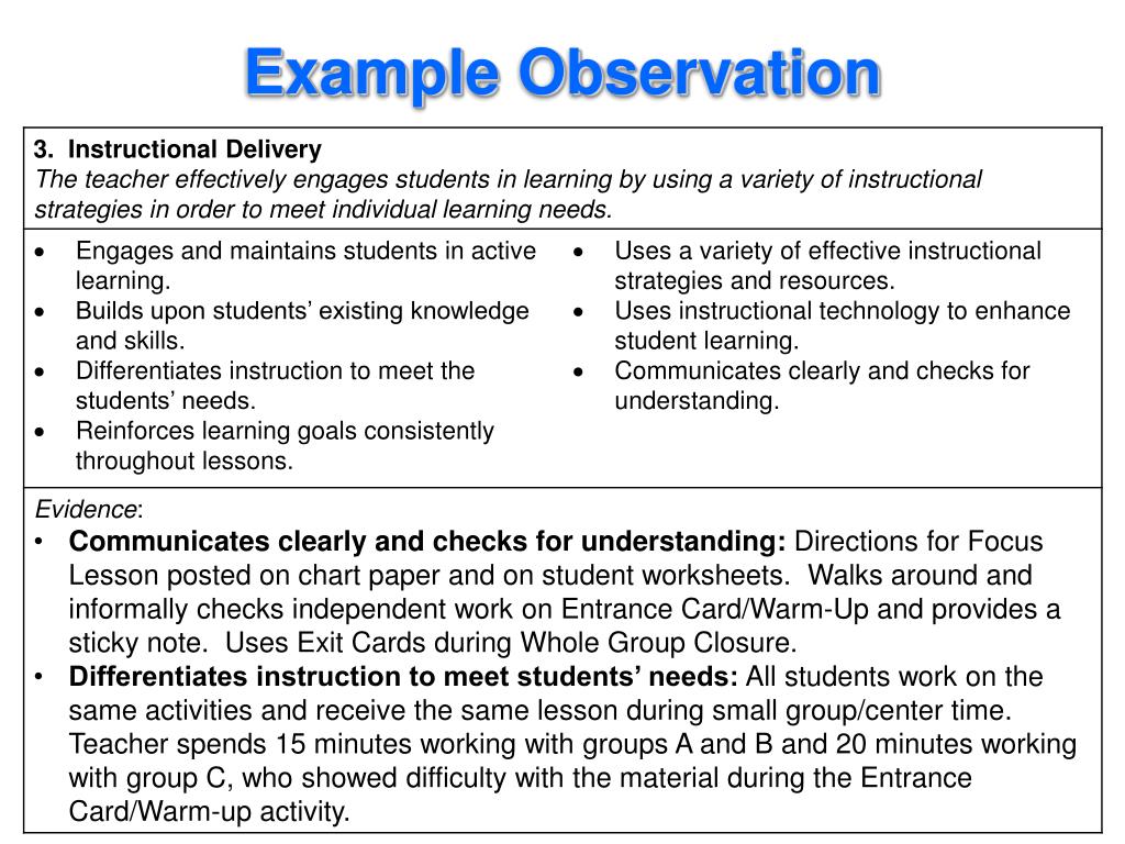 classroom observations examples structure torsh