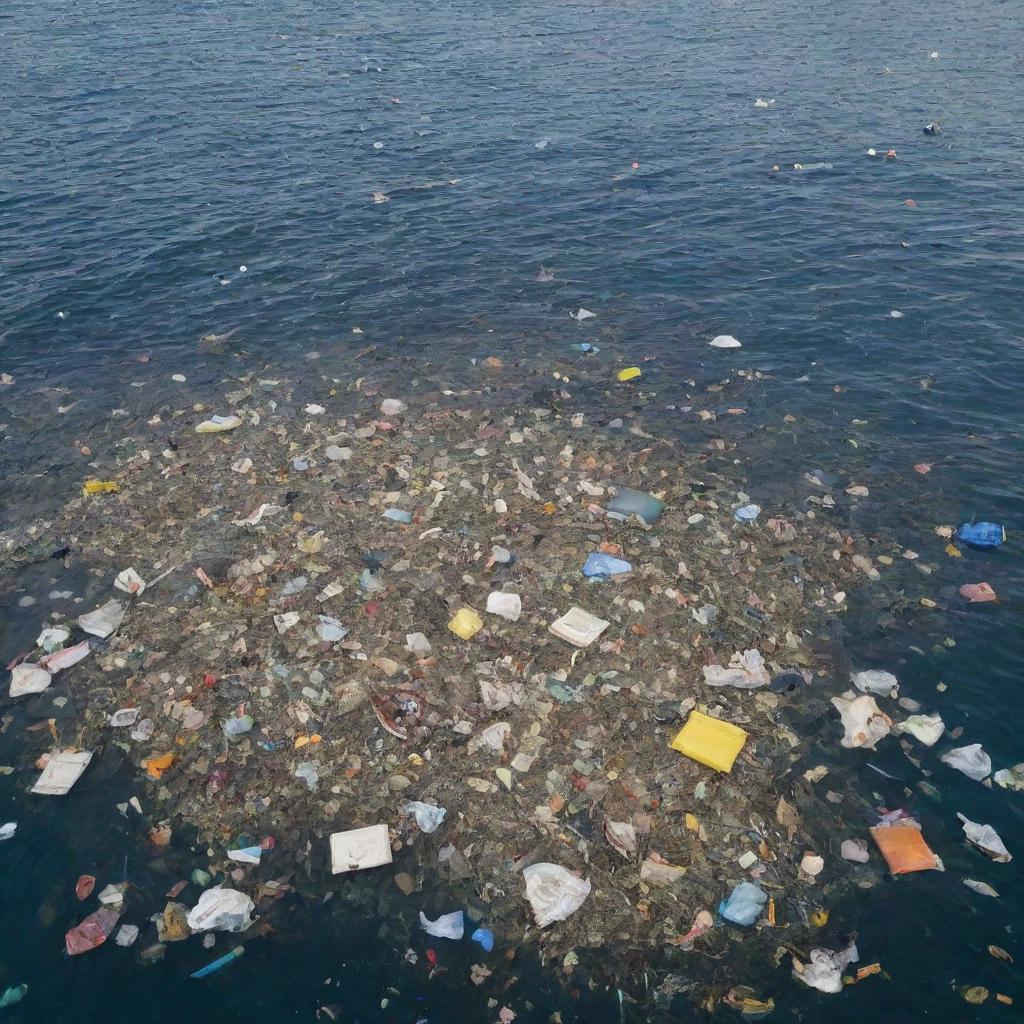 plastic bags garbage floating sea ocean concept