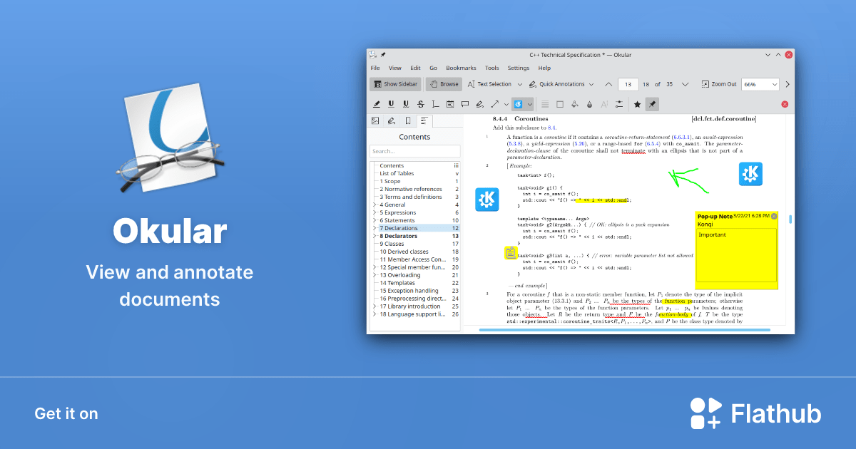 Tidak hanya Okular, anda juga bisa melihat gambar lain seperti App Icon, Dark Mode, Keyboard Shortcuts, Tenefus Zill, PDF Logo, Pard FD1, Rotate Icon, Deckel 38Mm, Evince, Konsole, Yakuake, Konversation, KTorrent, Kate, Kdenlive, Kontact, Kiten, digiKam, Tellico, and Krusader.