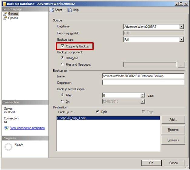 Berbagai Contoh Only Backup Sql