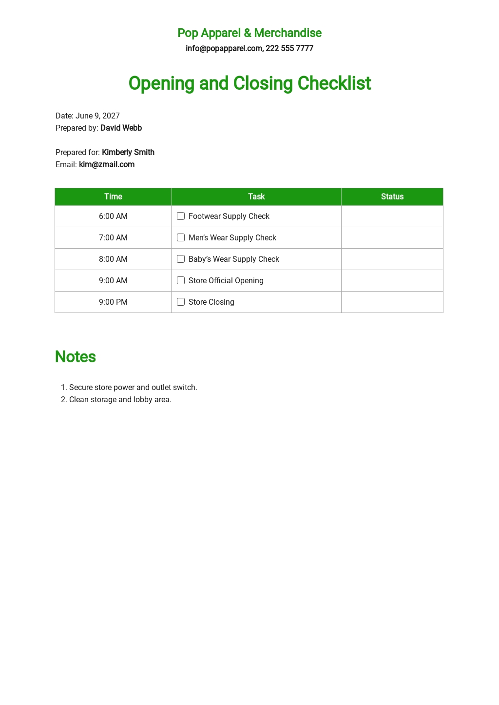 opening closing checklist template prntblconcejomunicipaldechinugovco