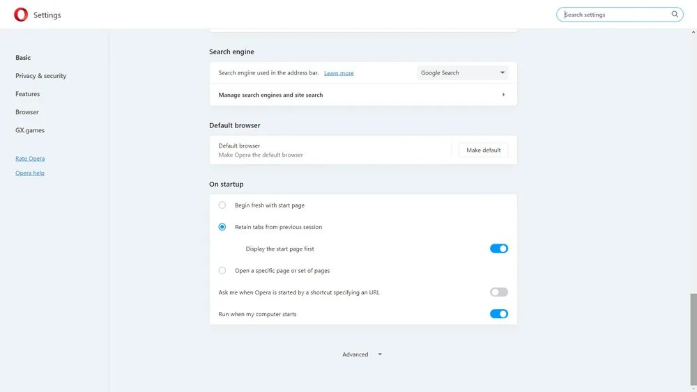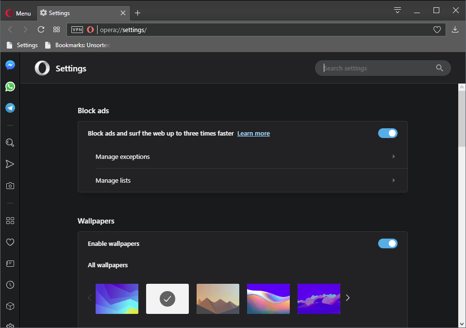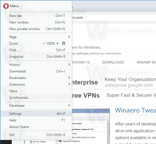 Berbagai Contoh Opera Settings