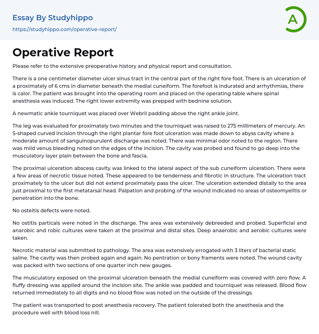 Jika kamu sedang mencari Operative Report, maka anda berada di halaman yang tepat. Kami menyediakan aneka Operative Report yang bisa anda pesan online. Silakan hubungi kami via +6282245078486, jangan lupa sertakan juka gambar yang diinginkan.