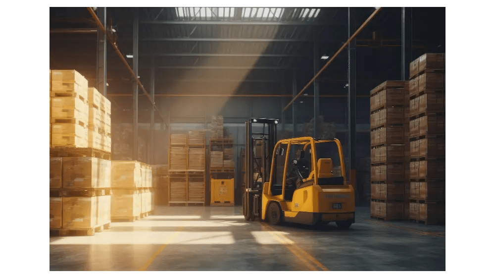 efficient warehouse operator maneuvering forklift loader logistics