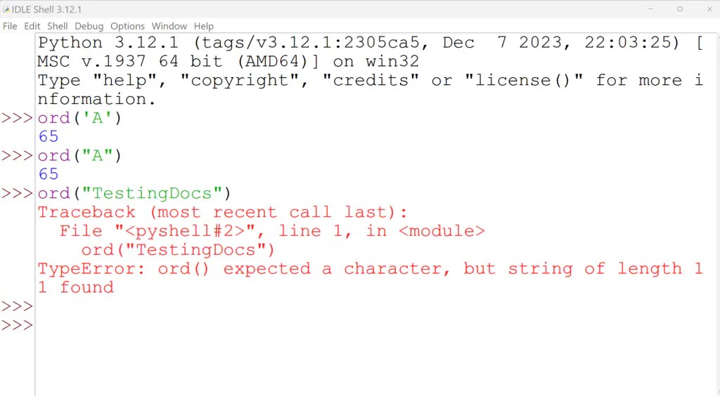 Berbagai Contoh Ord Function Python