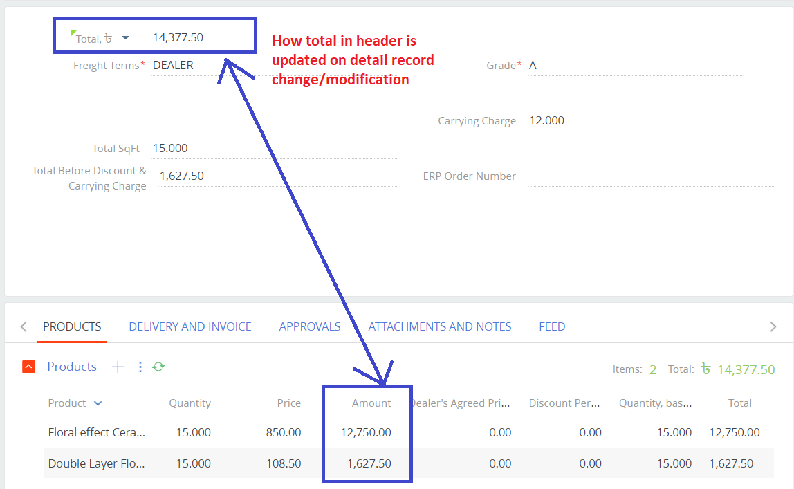 order field updated orderproduct detail record