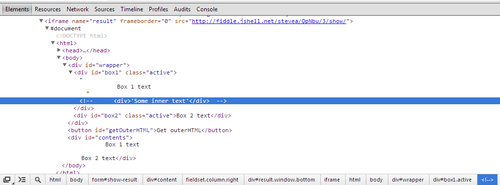 javascript outerhtml bring comments stack overflow