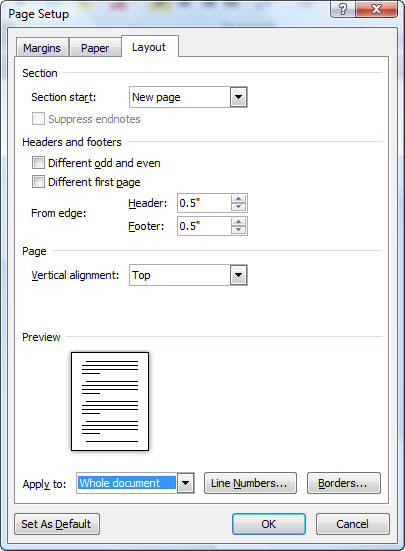 Berbagai Contoh Page Setup