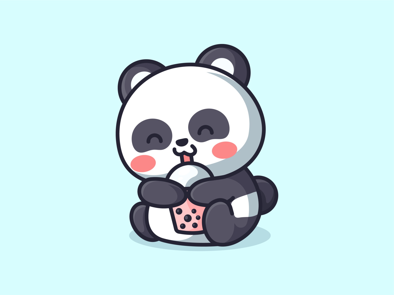 cute panda boba bubble tea panda bear boba drink panda drinking boba