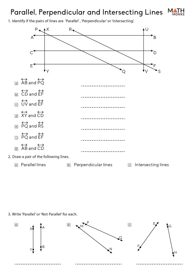 parallel perpendicular intersecting lines worksheets geeksforgeeks