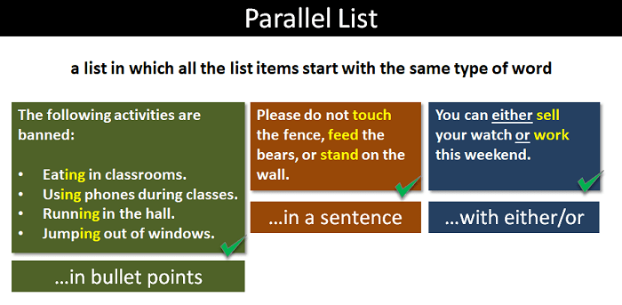 parallel structure lists sentences verb english grammar
