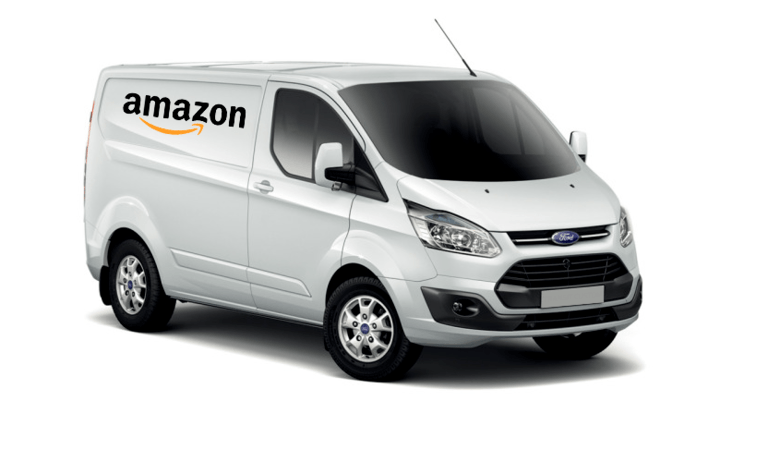 parcel van open doors lowered ramp cardboard boxes