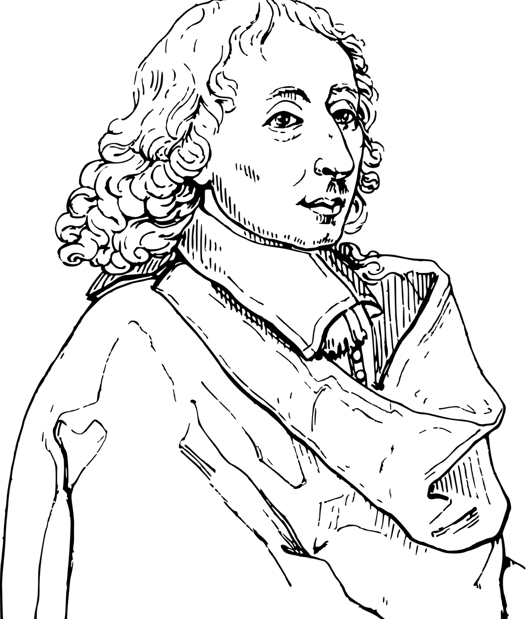 blaise pascal hand drawn sketch portrait plain white background