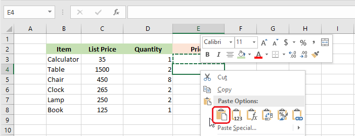 Berbagai Contoh Paste Option