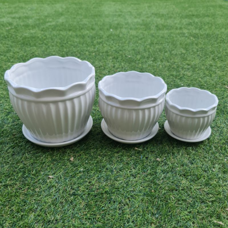 ceramic classic white pot series saucer medium pasu putih pasu