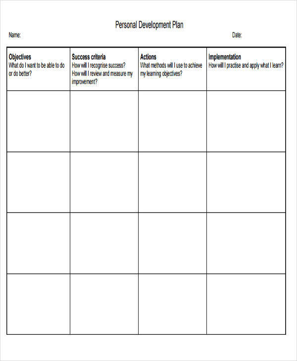 sample personal development plan template sample format