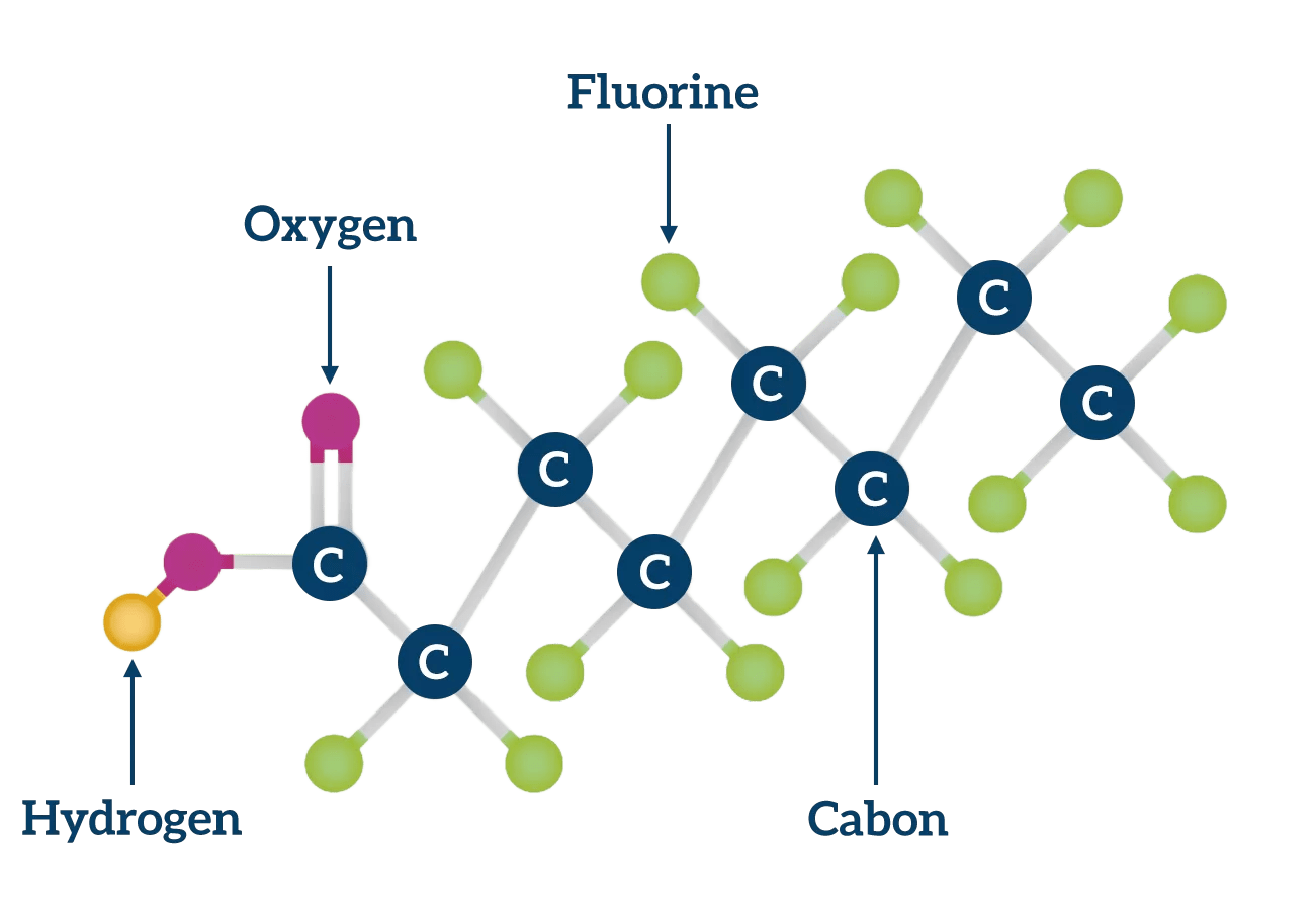 pfas molecular structure shows carbon fluorine bonds illustrating