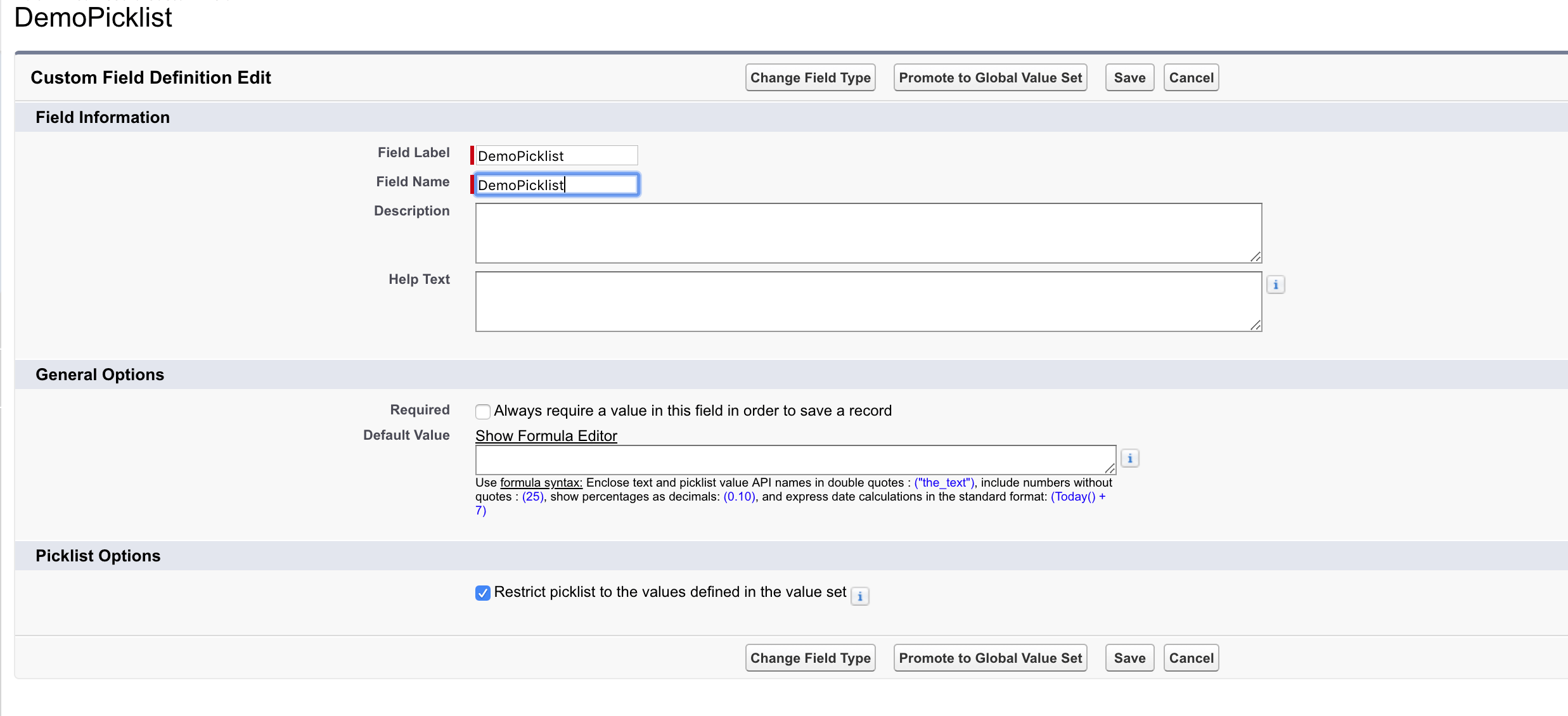 Berbagai Contoh Picklist Values