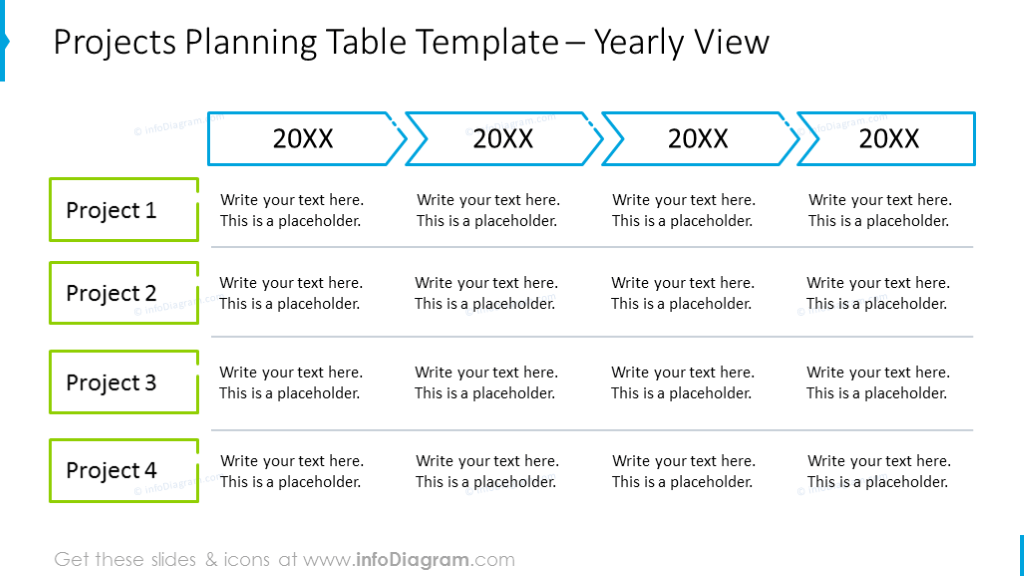 project planning outline table colored columns lines
