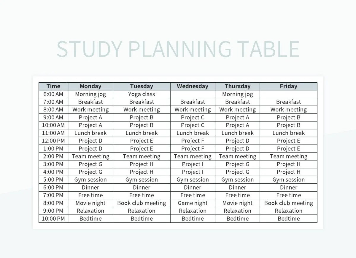 table planning study excel template google sheets file