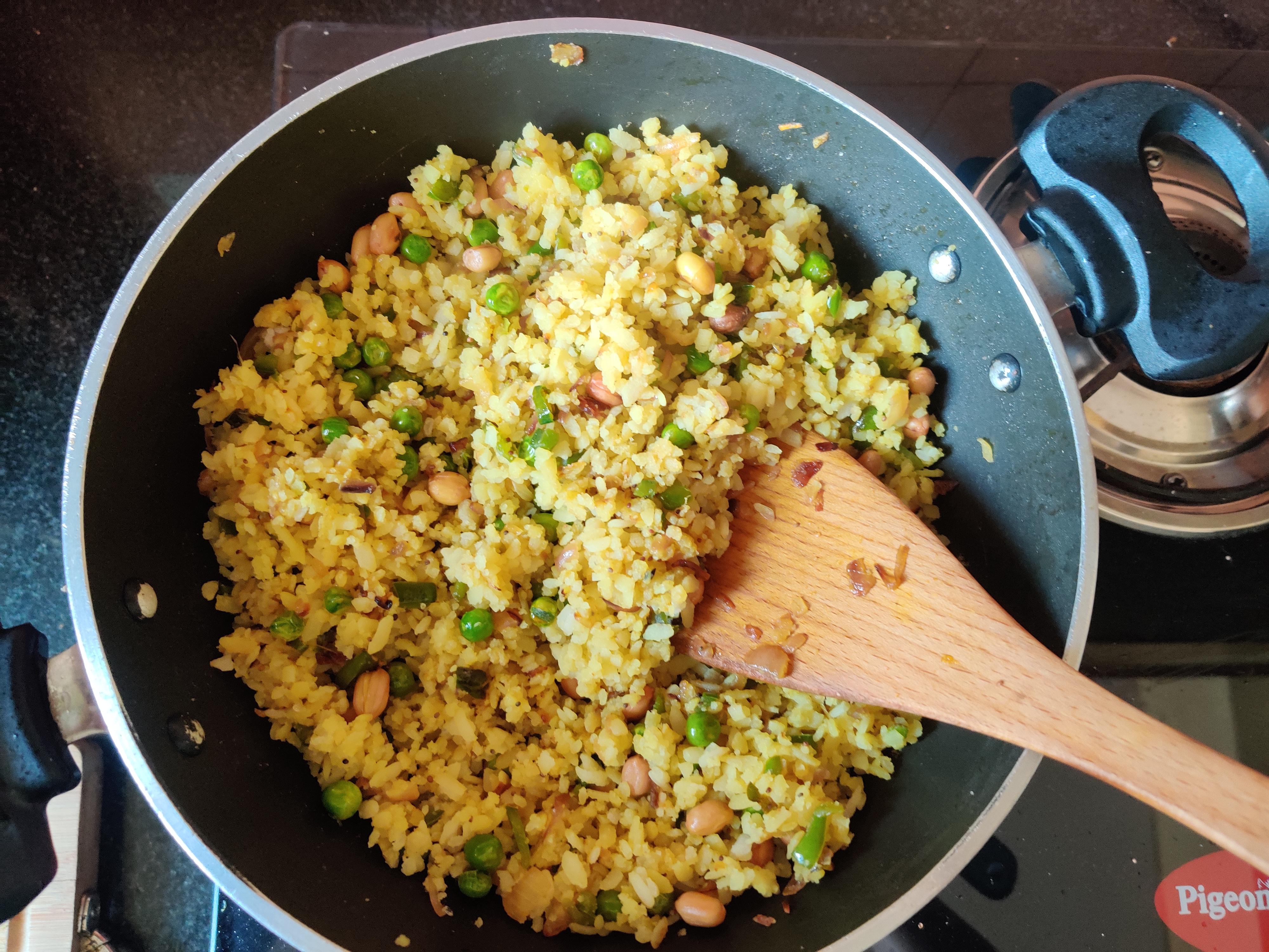 poha breakfast rice flakes lemon spices vegetarian recipes