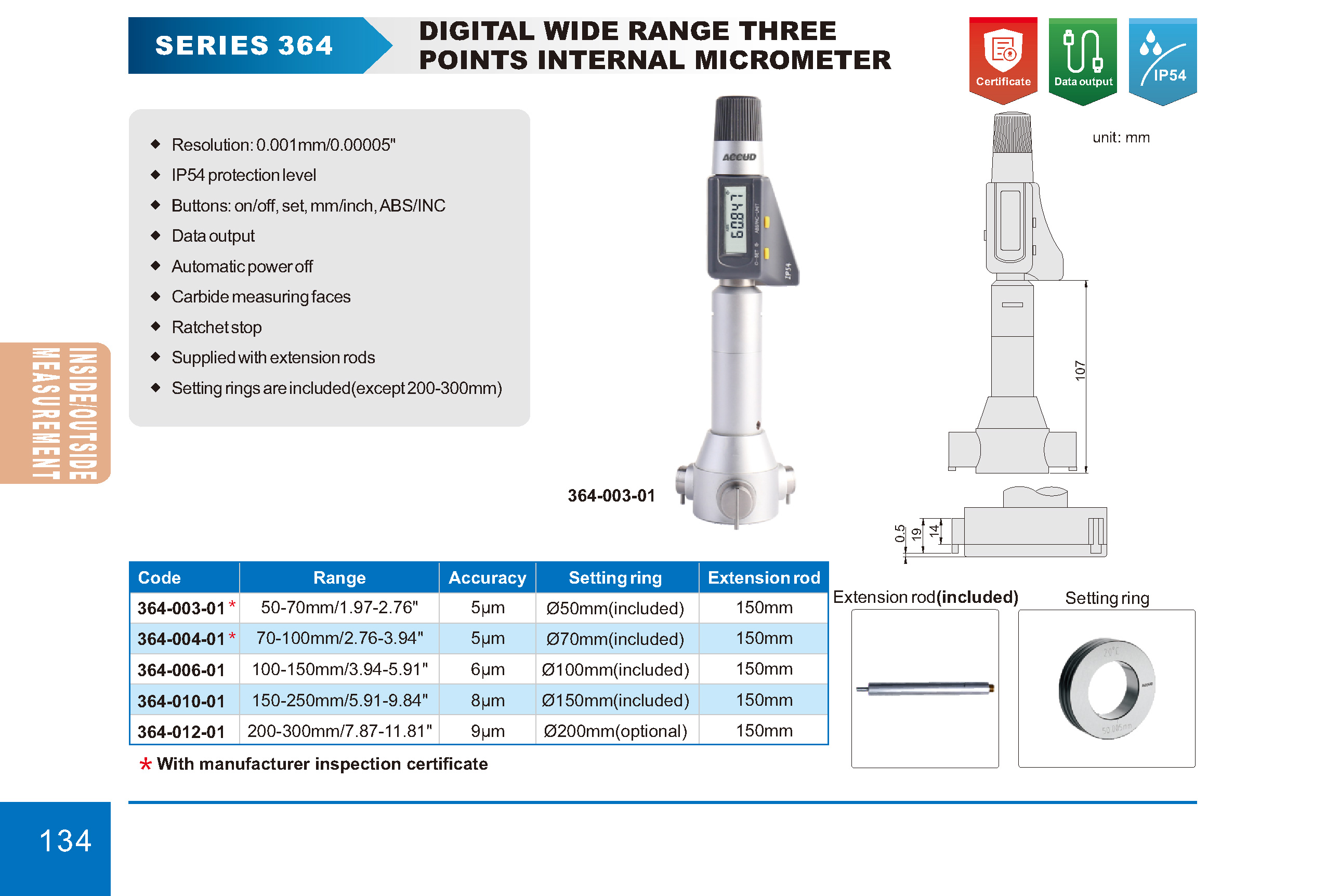 digital wide range points internal micrometer accud