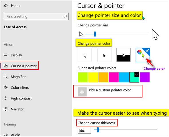 change mouse pointer color increase size windows