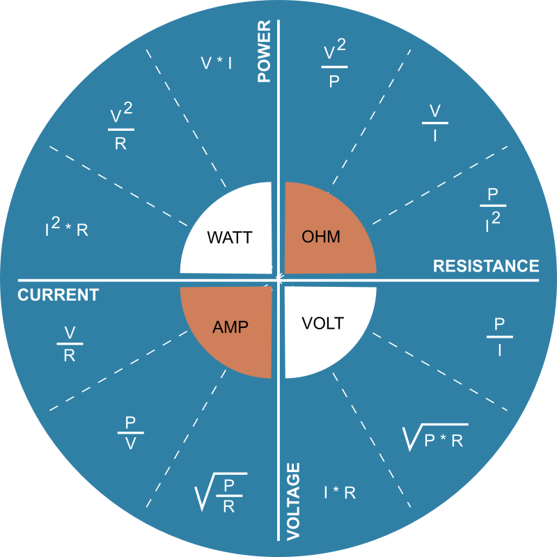 formula wheel shows volts resistance current power