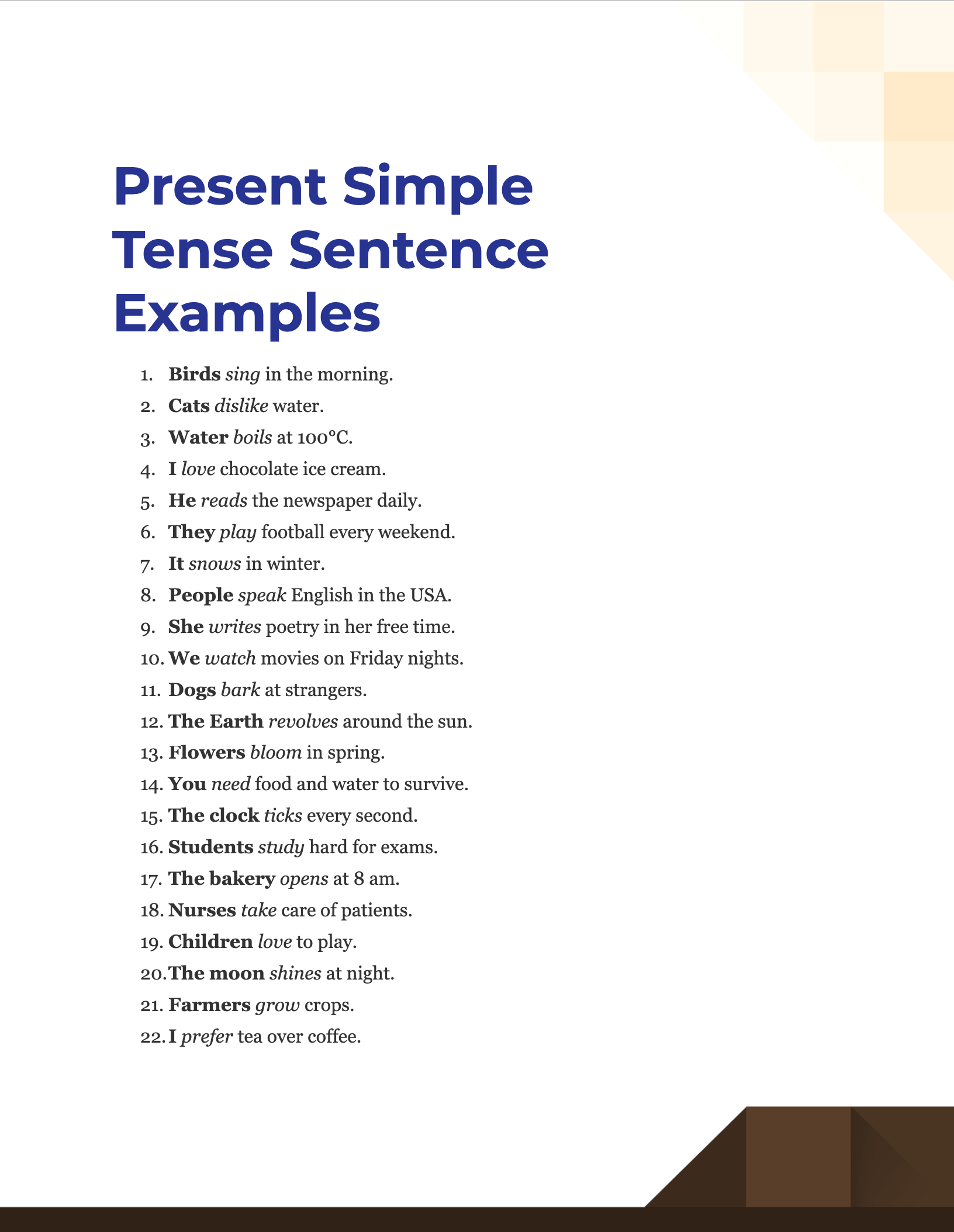 Jika kamu sedang mencari Present Tense Examples, maka anda berada di halaman yang tepat. Kami menyediakan aneka Present Tense Examples yang bisa anda pesan online. Silakan hubungi kami via +6282245078486, jangan lupa sertakan juka gambar yang diinginkan.