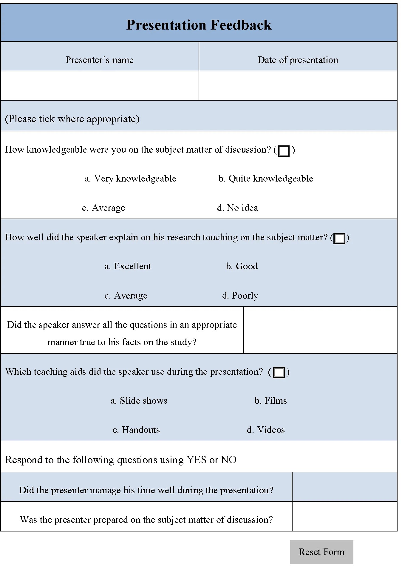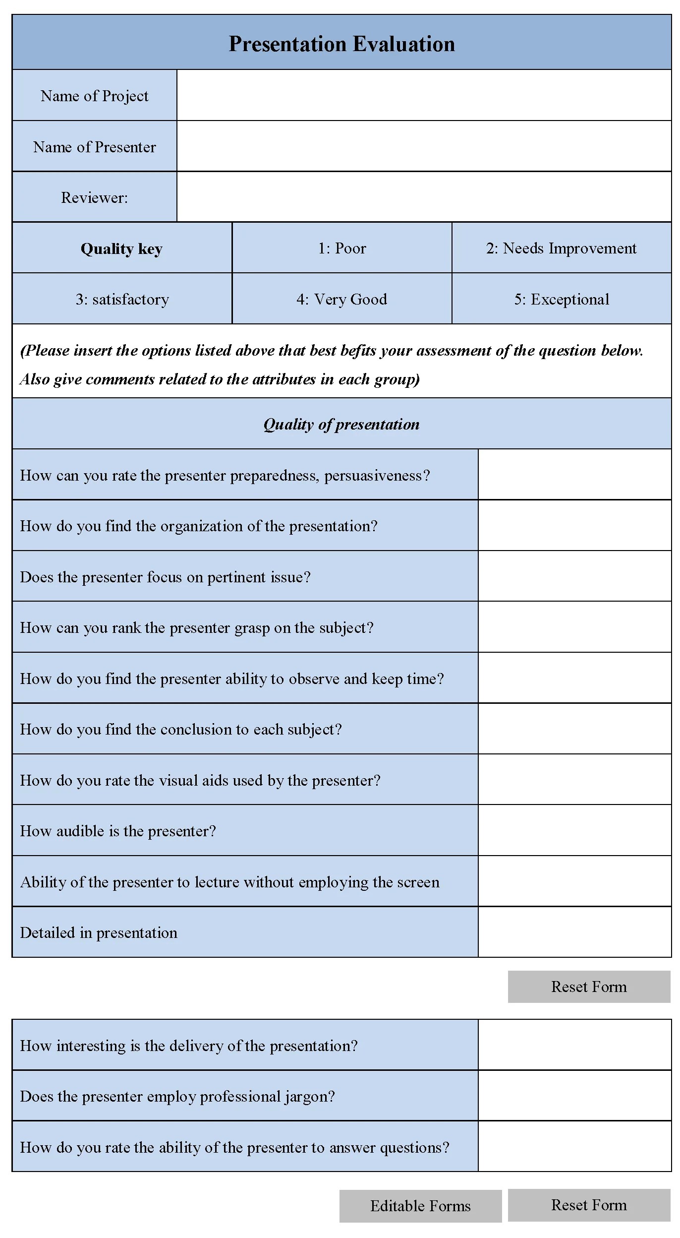 Tidak hanya Presentation Form, anda juga bisa melihat gambar lain seperti Self-Evaluation, Peer Evaluation, High Court, Feedback Survey, Training Feedback, Audience Feedback, Evaluation Criteria, Oral History, Peer Feedback, Critique, Evaluation, Skills Evaluation, Templates For, PDF, Editable, and Peer Review.