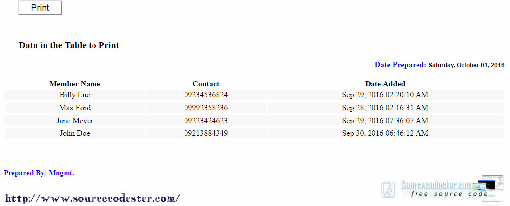 Berbagai Contoh Print Table