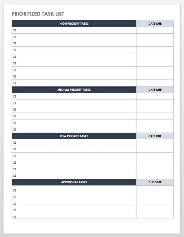 Berbagai Contoh Priority Task List