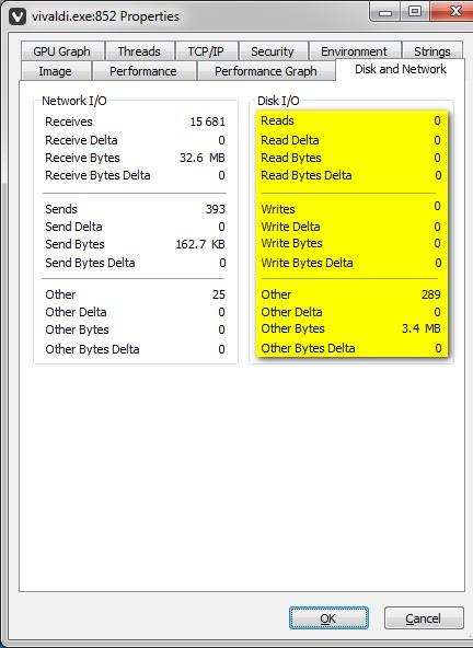 windows process explorer process disk readwrite bytes working