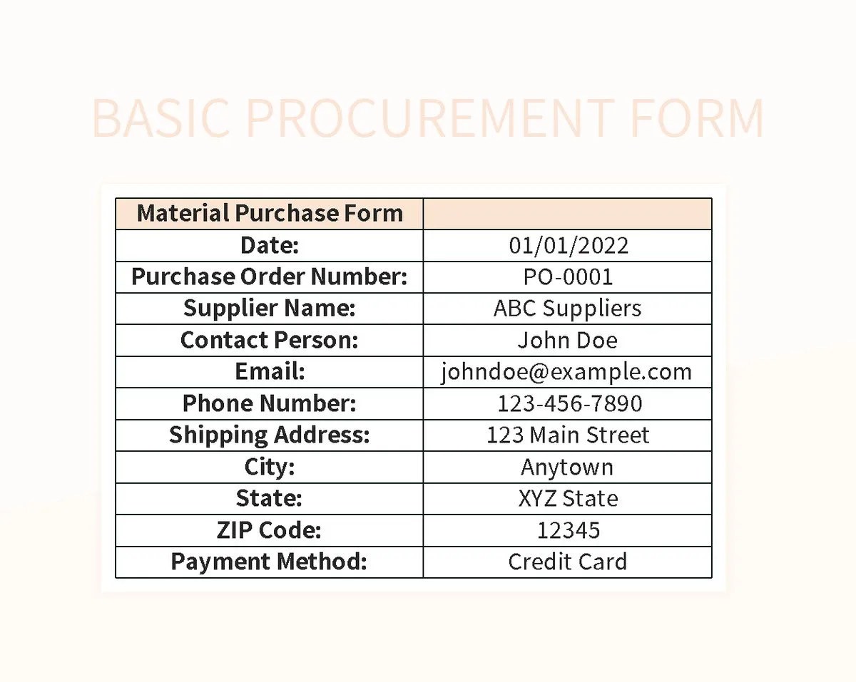 basic procurement form excel template google sheets file