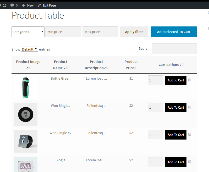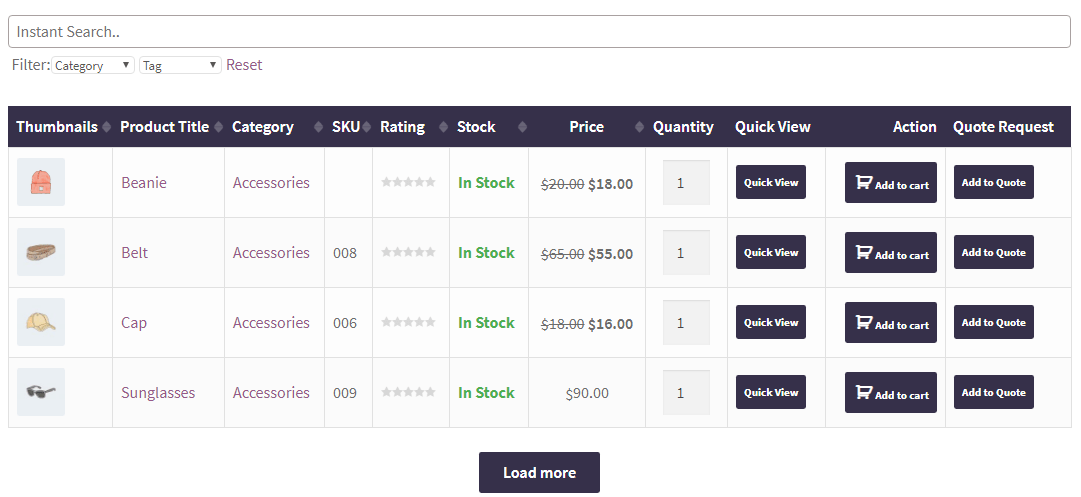 Berbagai Contoh Product Table