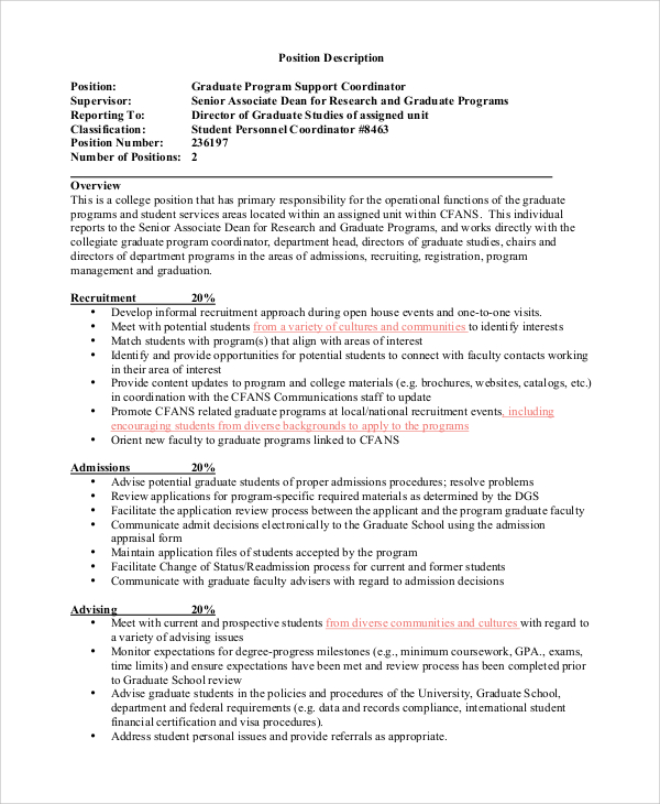 sample program coordinator job description templates