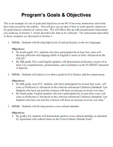 Berbagai Contoh Program Goals