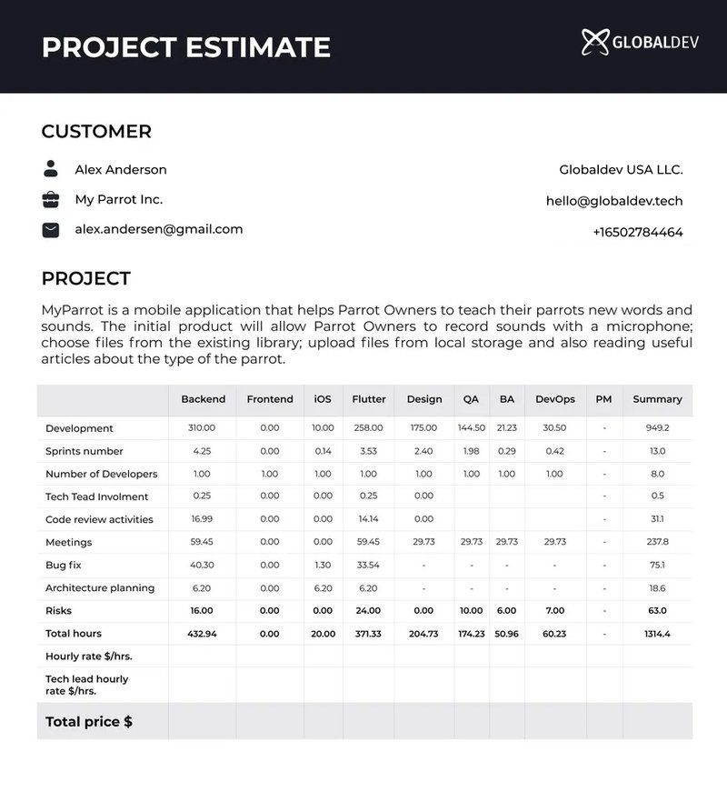 Berbagai Contoh Project Estimate
