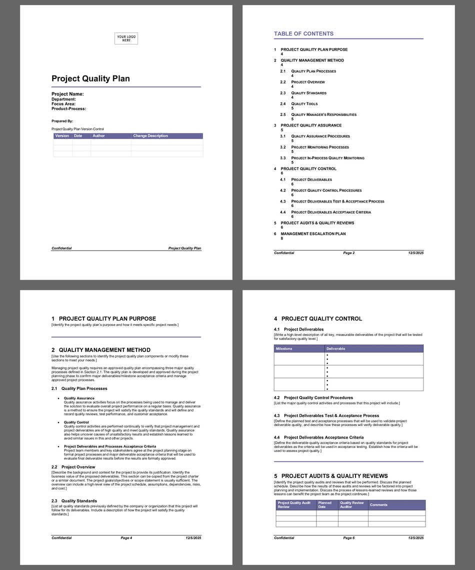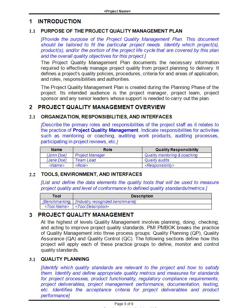 project quality management plan sample master template document