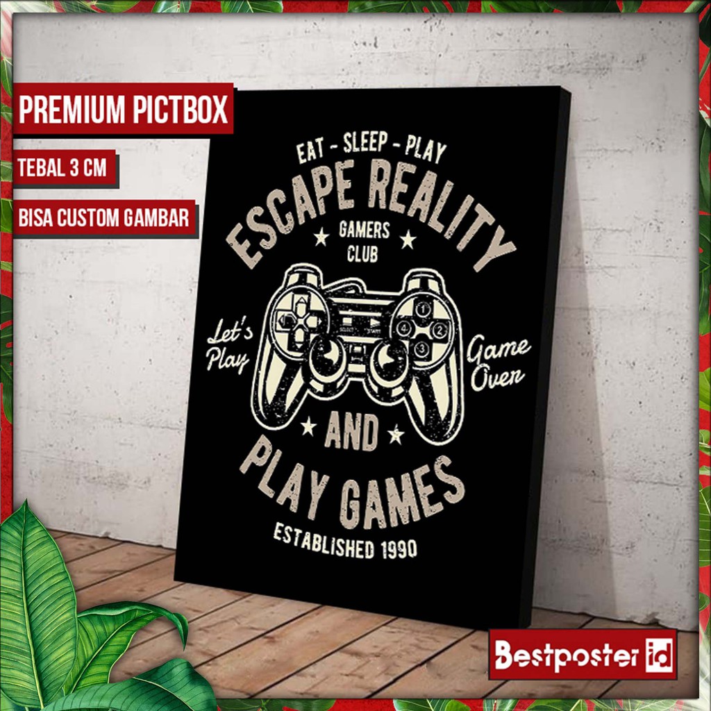jual poster dinding playstation gaming frame kayu tebal shopee