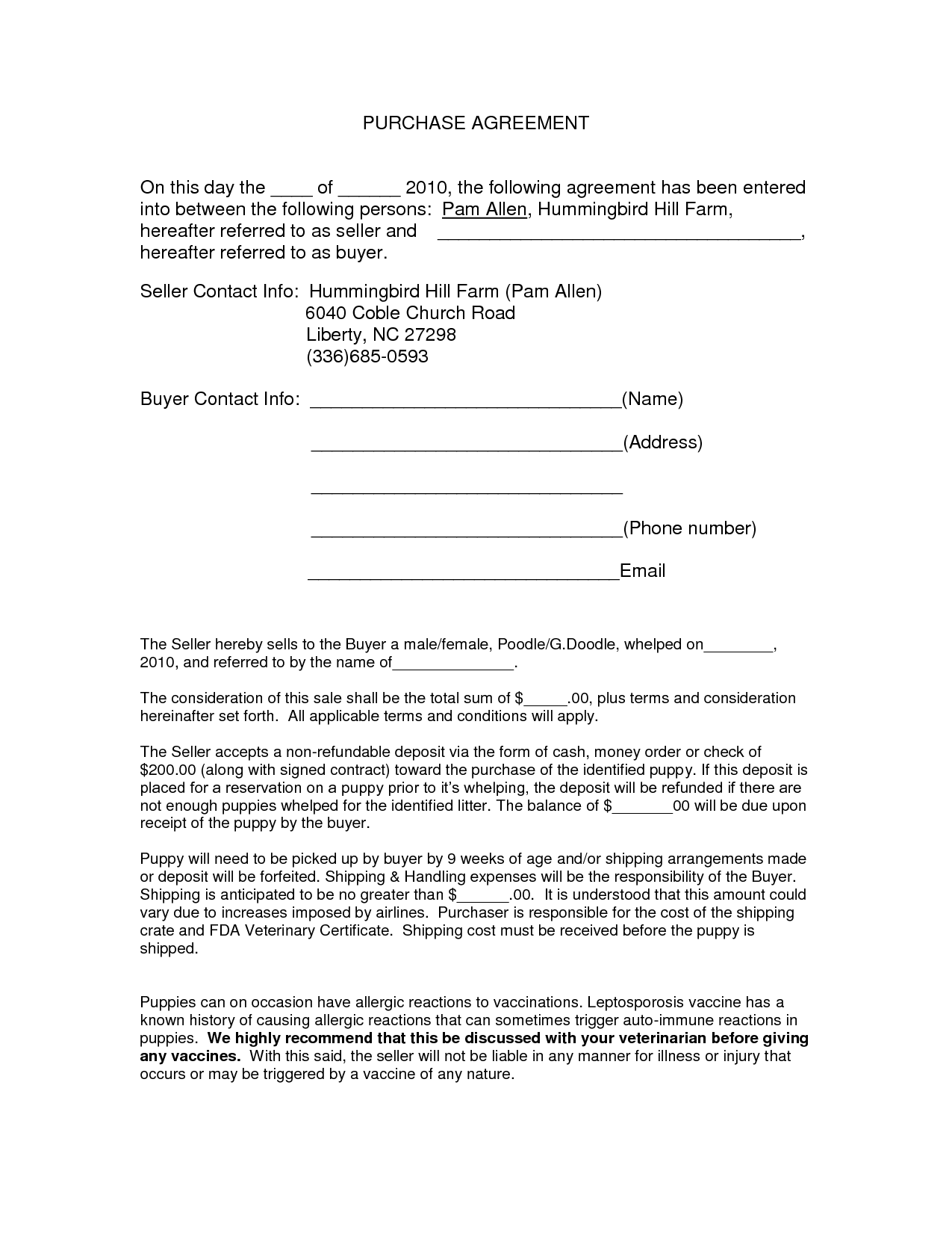 purchase agreement purchase contract word files instant