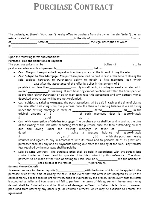purchase contract template printable documents