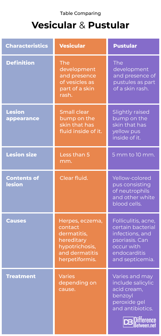 vesicular pustular difference vesicular pustular