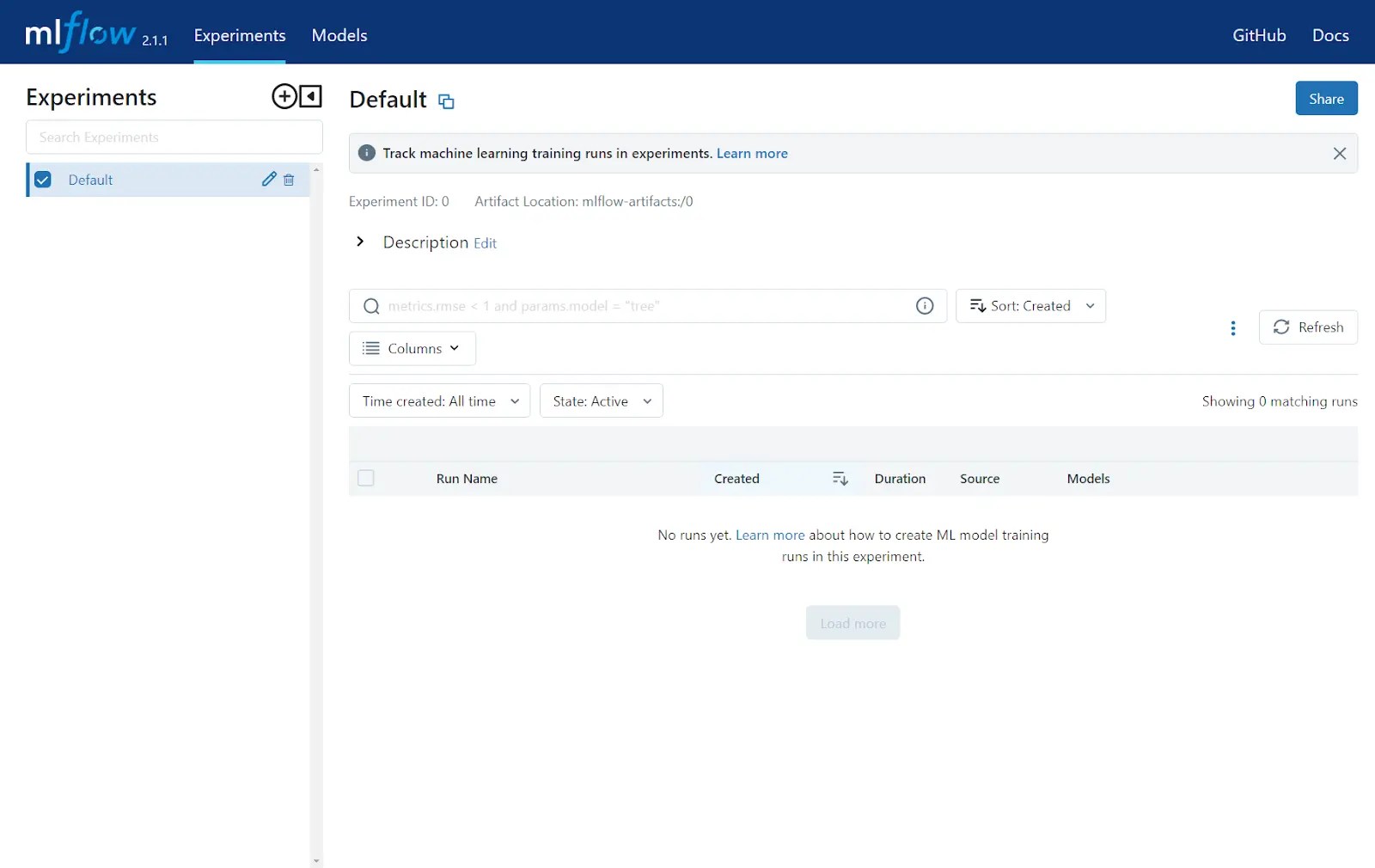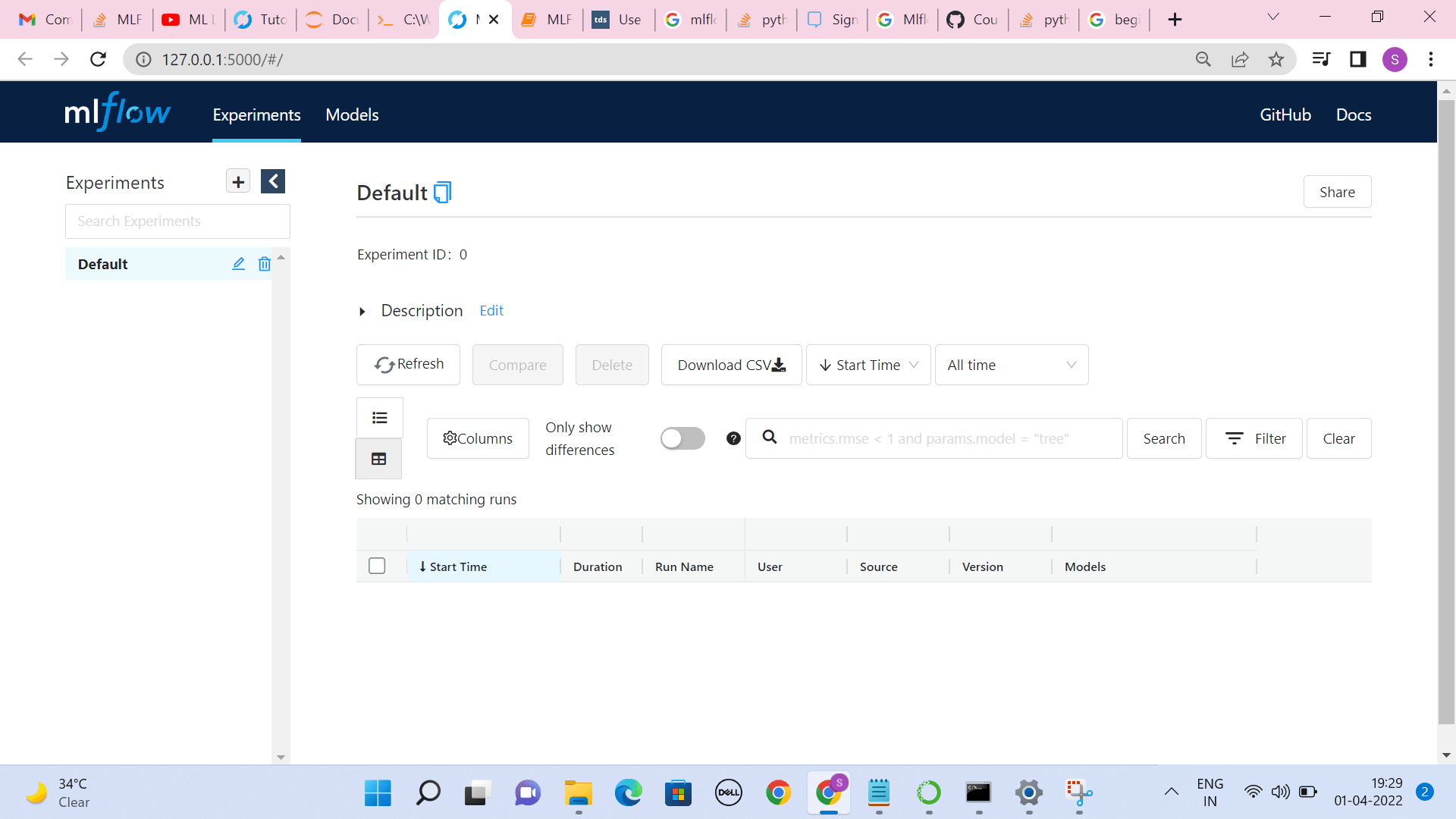 python mlflow tracking ui showing experiments local machine