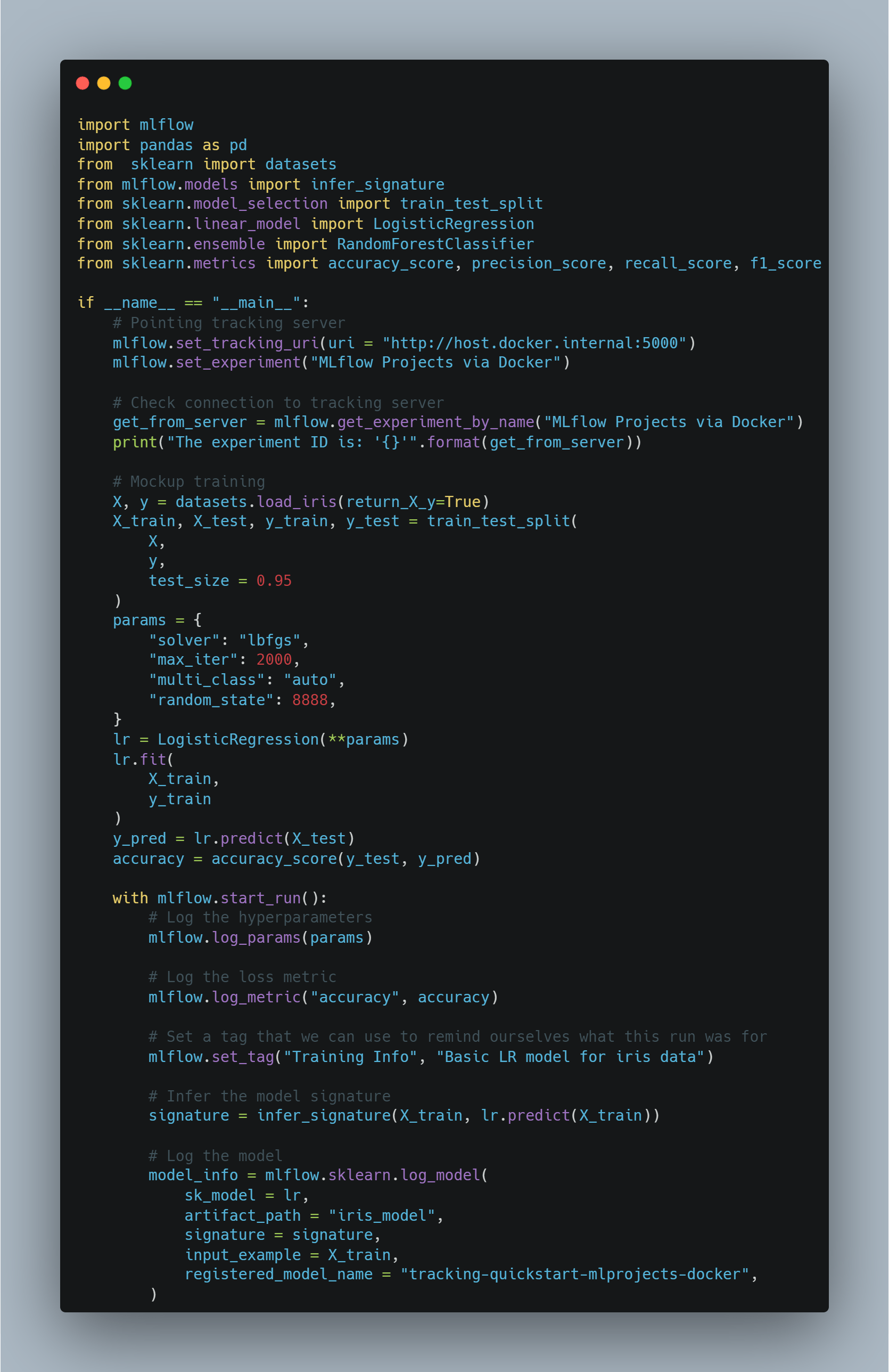 python assign mlflow tracking server running project