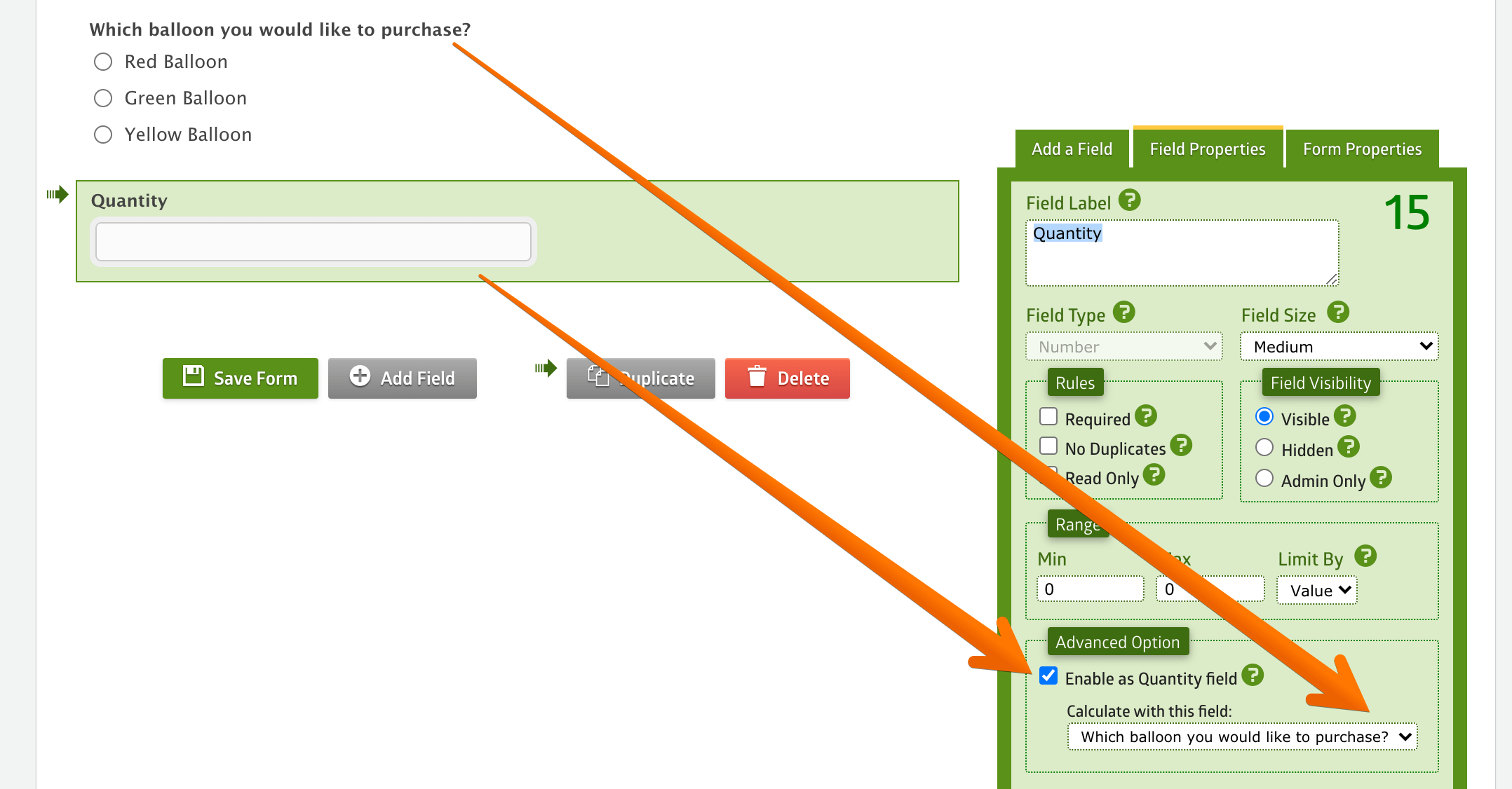 price calculation quantity field html form builder php