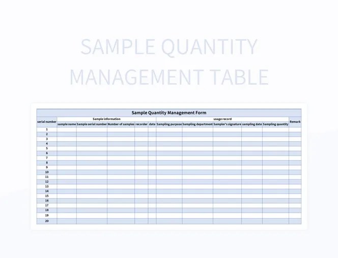 sample quantity management table word document word template