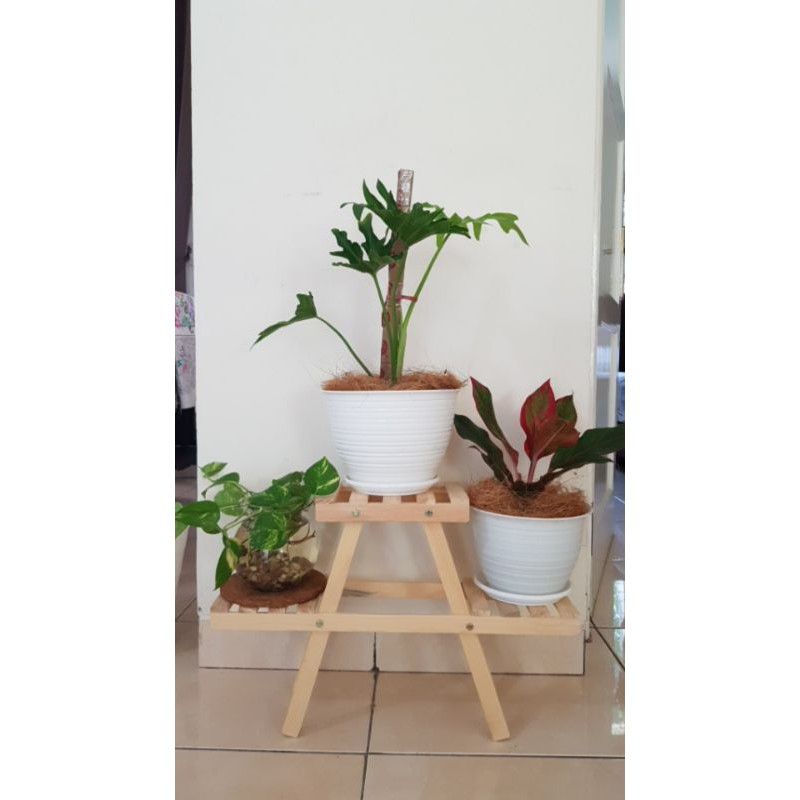 jual rak bunga minimalis flower stand rak bunga susun kayu warna