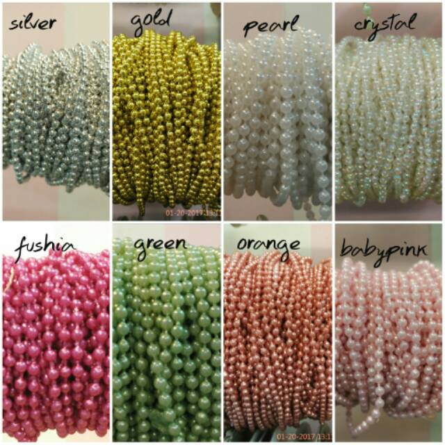 mutiara rantai meteran mm warna gold silver putih rantai mutiara