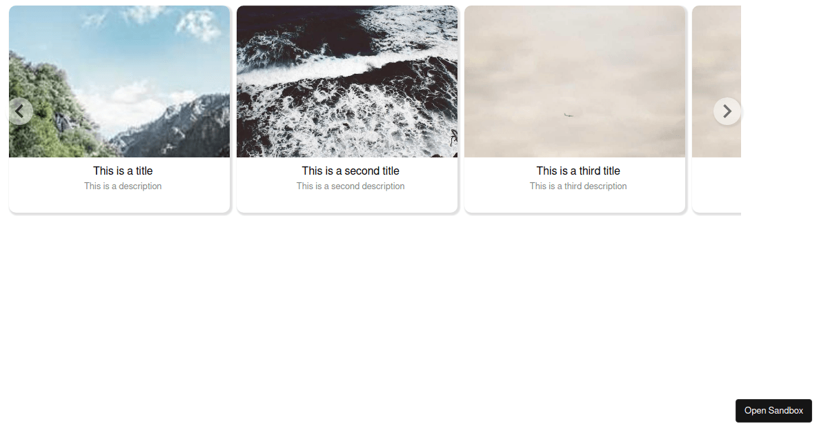 Tidak hanya React Card Slider, anda juga bisa melihat gambar lain seperti Infinite Logo, Range Bar Graph, Audio Visualizer, Price Range, Multiple Select, Switch Component, Time-Range, Material UI, Function Component, Mui Carousel, Color, Mui Cards, Snap, Horizontal, Next Match, Card, Slick, Silk, Vertical Example, Carousel, Instagram, Arc Range, and RC.